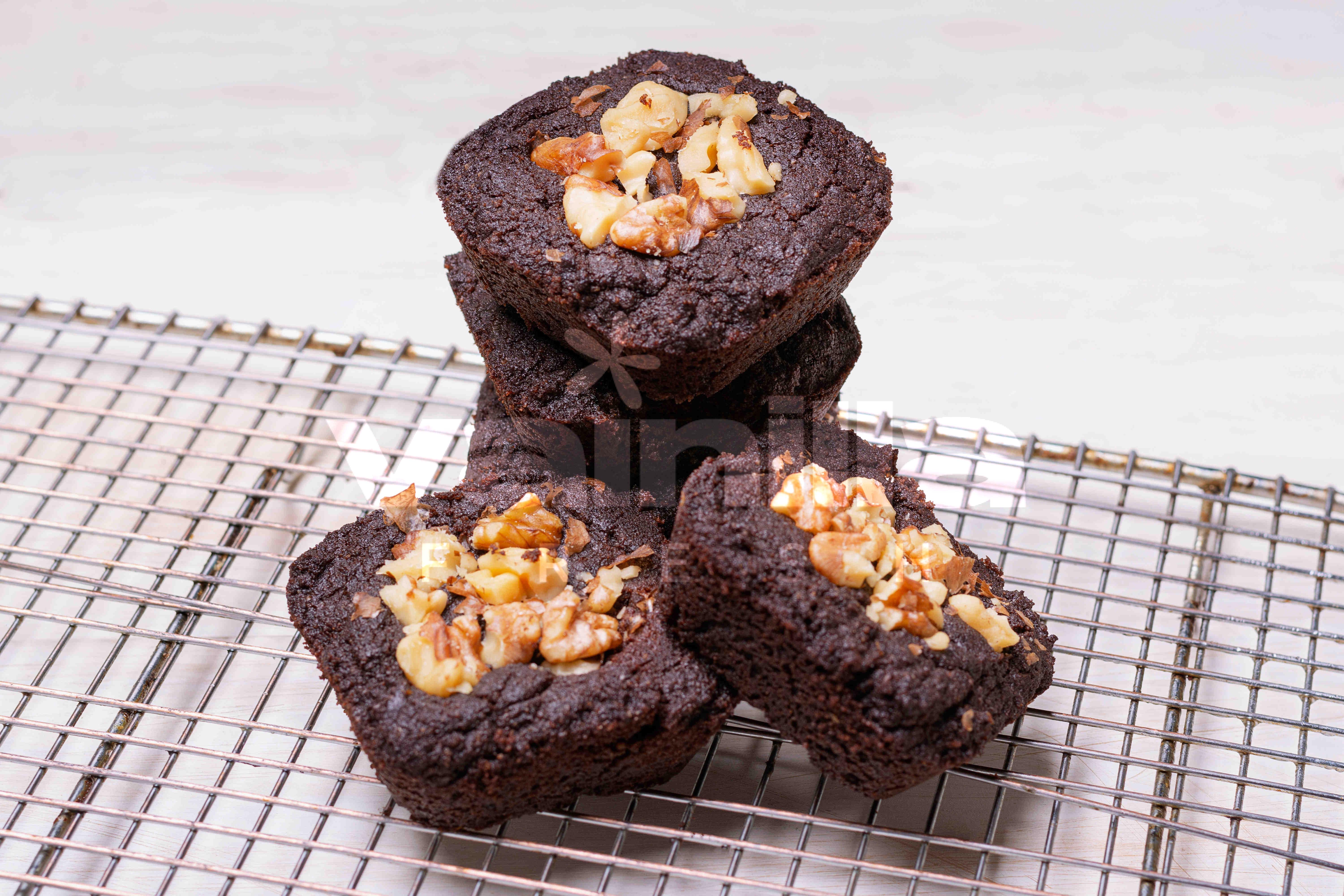 Hechos con harina de almendras, harina de coco y cocoa sin azúcar, terminados con nuez de nogal.